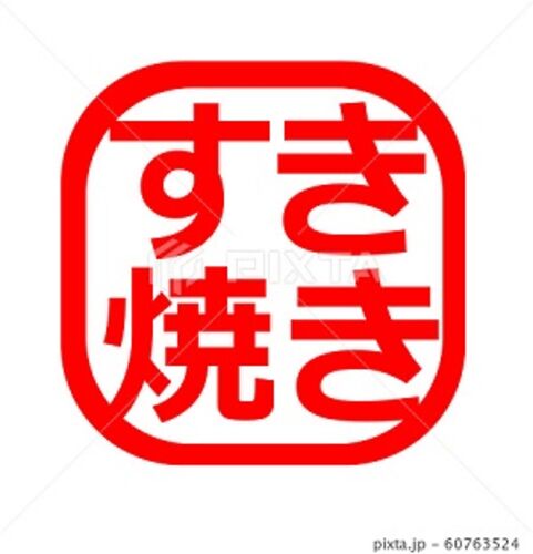 すき焼き, ハンコ, スタンプ, マーク, アイコン, pop, イラスト, 判子, 文字, 和食, 食べ物, 料理, 鍋料理, スキヤキ, 素材, かわいい, チラシ, シンプル, 赤色, 広告