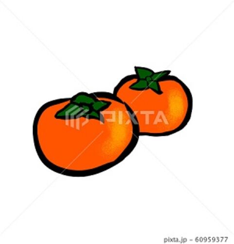 柿, 果物, イラスト, カット, 挿絵, 食べ物, かわいい, 果実, かき, 秋の味覚, 秋