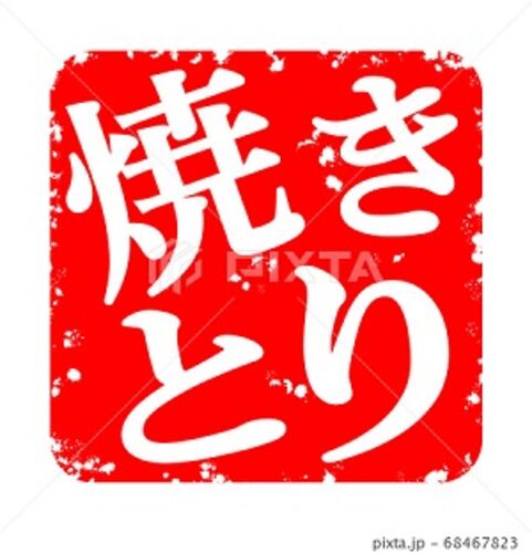 焼きとり, 焼き鳥, やきとり, イラスト, ハンコ, 焼鳥, 鶏肉, 料理, 串焼き, ヤキトリ, 文字, 居酒屋, 赤色