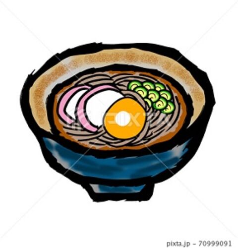 蕎麦, そば, ソバ, 麺, 麺類, 月見そば, イラスト, 食べ物, 和食, 料理, 食事, 月見蕎麦