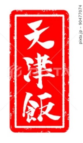 天津飯, 中華料理, 料理, ご飯, イラスト, 筆文字, 文字素材, スタンプ, POP, マーク, アイコン, 漢字, ハンコ, web