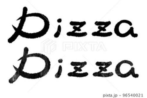ピザ, pizza, 筆文字, 文字素材, かすれ文字, ローマ字, イラスト