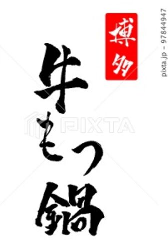 牛もつ鍋, もつ鍋, 料理, 筆文字, 文字素材, イラスト, 博多, 九州, 和風, pop