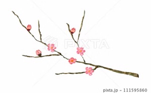 桃の花, 春, イラスト, 花, 水彩, 手描き,